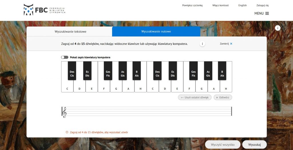 Cel? Umożliwić wyszukiwanie pełnotekstowe i melodyczne wśród ponad 45 000 obiektów nutowych w największym polskim agregatorze zasobów cyfrowego dziedzictwa kulturowego.